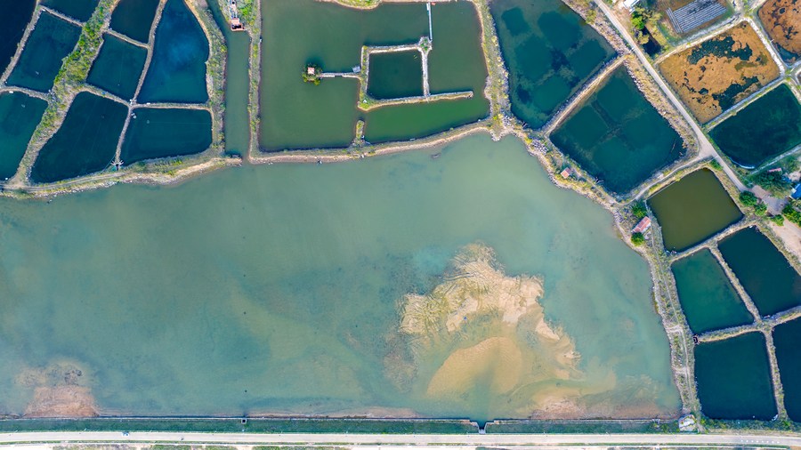 This aerial photo shows salt pans at "Nanji" village of Jiaowei township of Xuwen county, Zhanjiang city, South China's Guangdong province, May 27, 2023. [Photo/Xinhua]