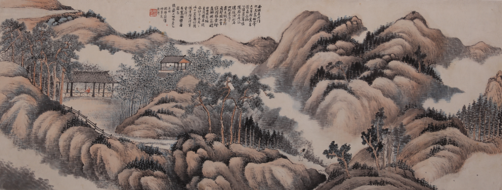 A landscape painting by Lin Shu (1852-1924), ink and color on paper, 1911, from the collection of the Capital Museum of China [Photo/Official WeChat account of the Hebei Museum]