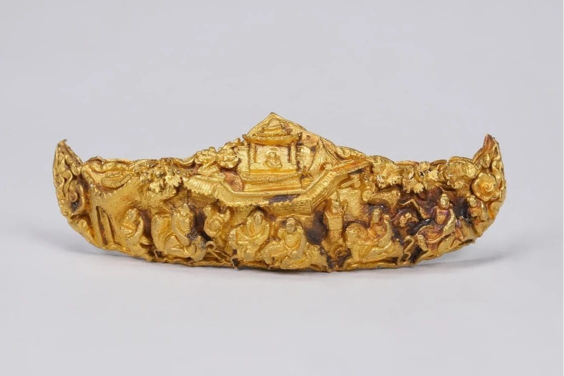 Gold hairpin with figure and pavilion motifs, Ming Dynasty (1368-1644) [Photo/Official WeChat account of the Zhenjiang Museum]