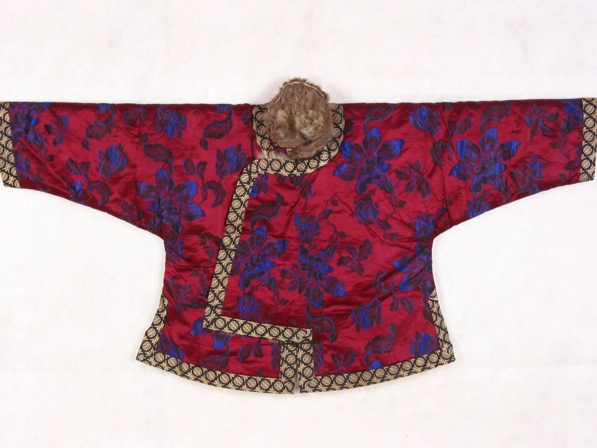 Purple satin and white fox fur magua (a style of jacket worn by males during the Qing Dynasty) with orchid patterns, Qing Dynasty [Photo/Official WeChat account of the Shenyang Palace Museum]