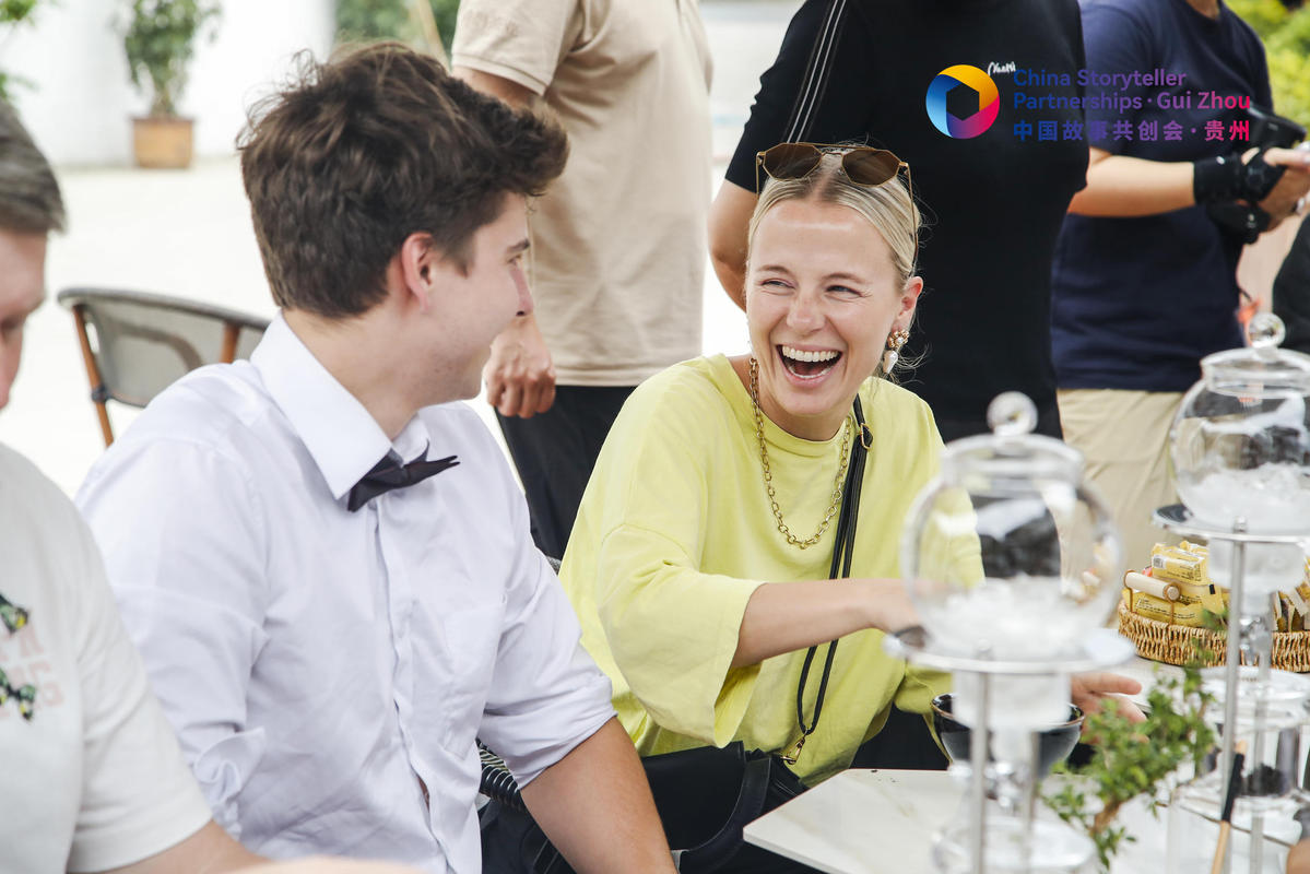 Foreign social media influencers experience making tea at the Suntree Tea Plantation in Gaozhai village, Zhuchang town, Guiyang city in Southwest China's Guizhou province on Saturday. [Photo/chinadaily.com.cn]