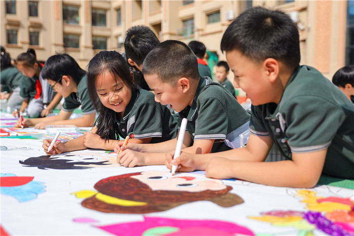 Children in Licang district, Qingdao paint their best wishes for the upcoming National Day. [Photo/VCG]