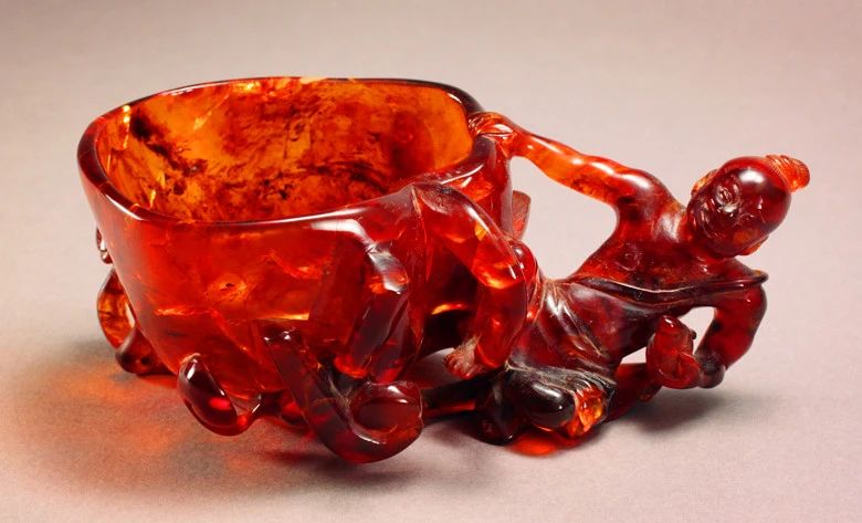 Amber cup in the design of a fisherman playing with lotus flowers, Ming Dynasty, from the collection of Nanjing Municipal Museum [Photo/Official WeChat account of Nanjing Municipal Museum]