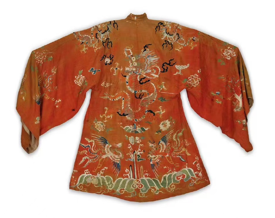Red silk robe with gold and embroidered four-claw dragon and phoenix motifs, worn by Qin Liangyu (1574-1648), Ming Dynasty female general, from the collection of Chongqing China Three Gorges Museum [Photo/Official Weibo account of Chongqing China Three Gorges Museum]