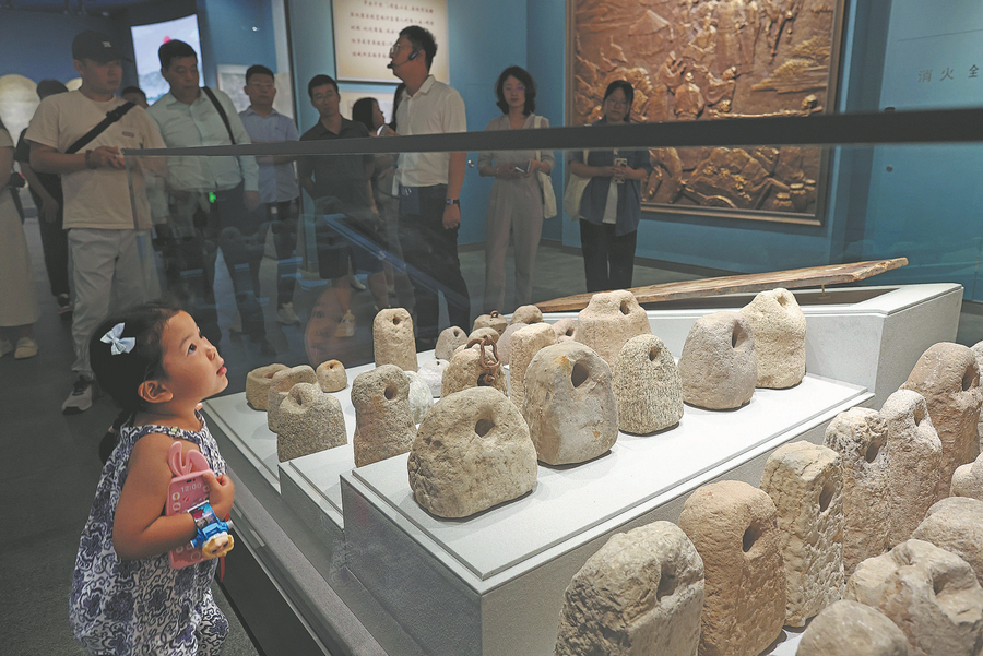 A little girl is attracted by the exhibits at the Hedong Lake Salt Museum on July 19, 2024. [Photo by Zhu Xingxin/China Daily]