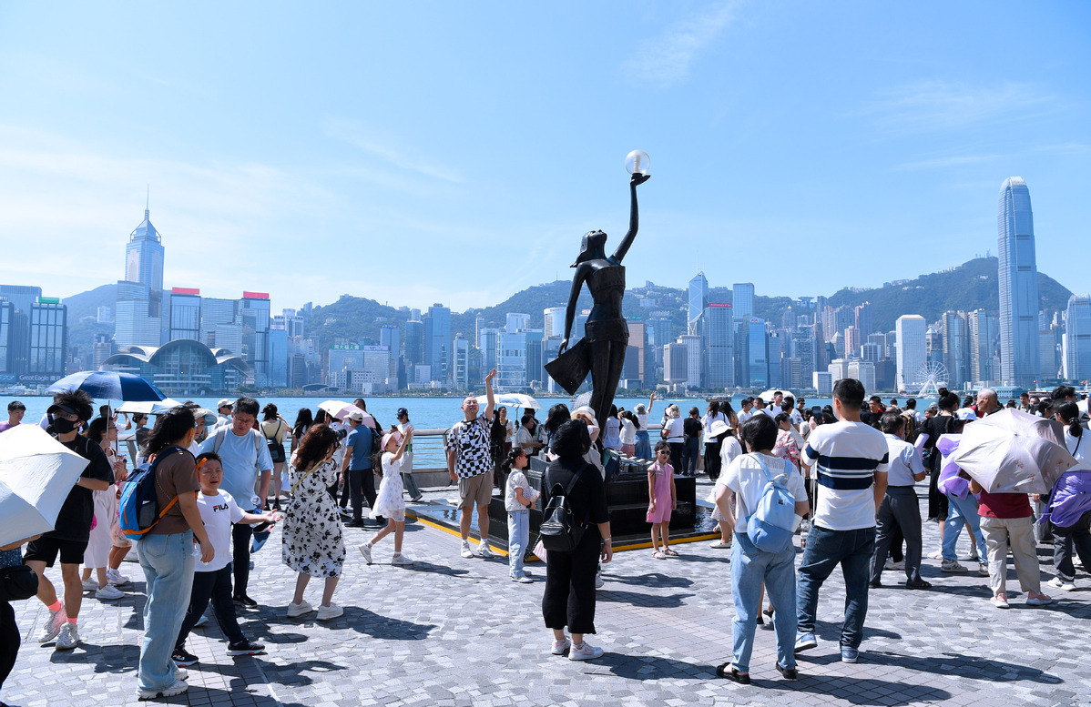 Hong Kong logged about 1.216 million visitor arrivals from the Chinese mainland during the seven-day National Day holiday ending Monday, up by around 100,000 from the same holiday last year.[Photo/Xinhua]