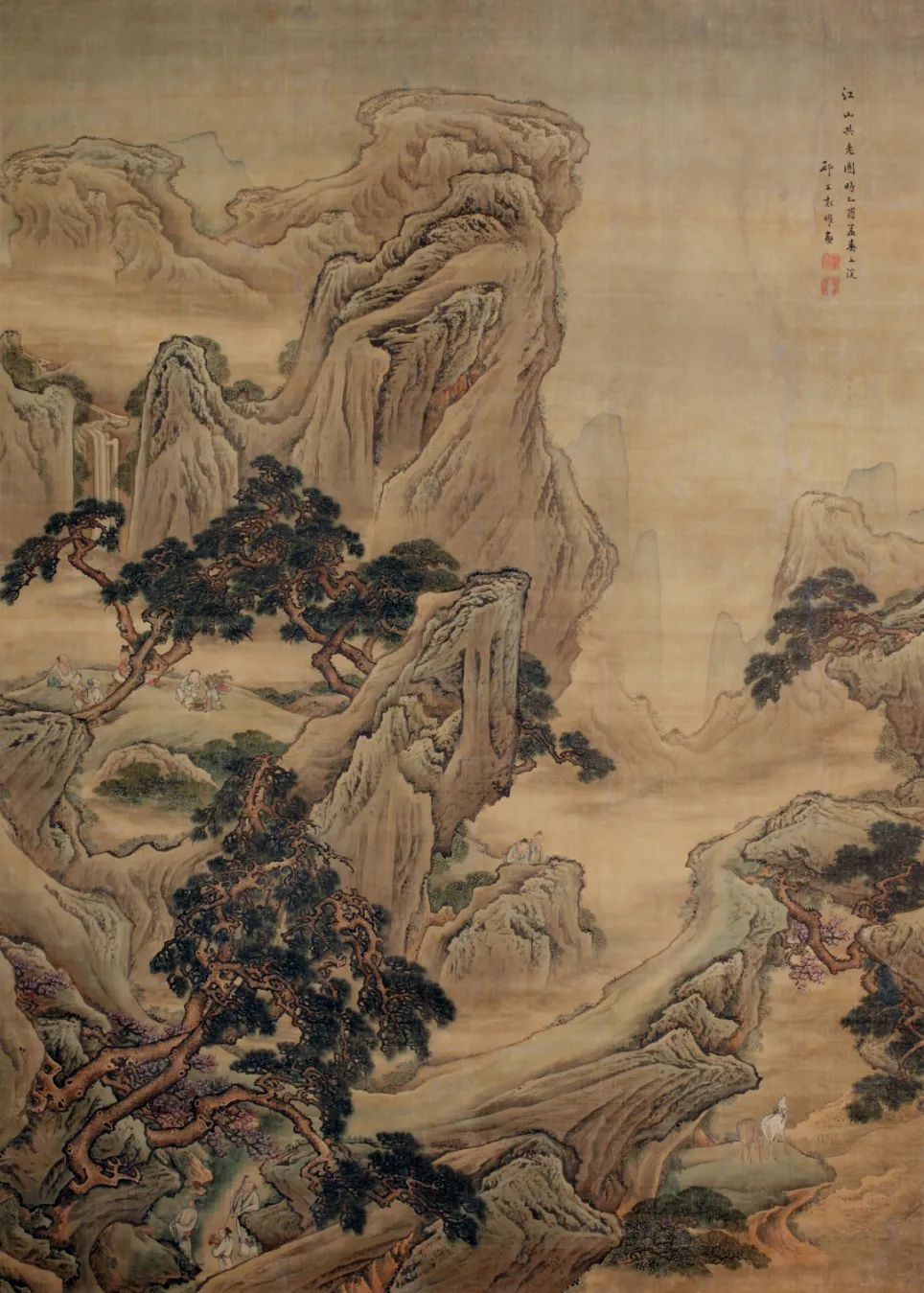 The painting wonderfully evokes the atmosphere of late autumn and the tradition of climbing high to admire the distant views during this special time of year. Collection: Shandong Museum.