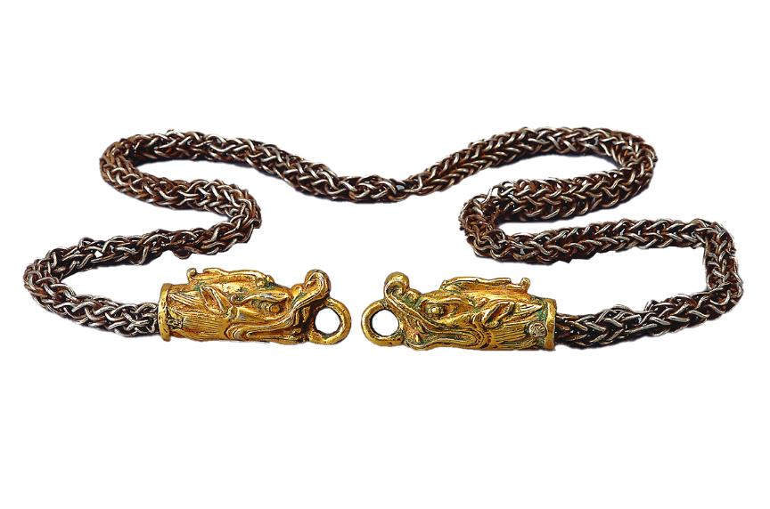 Silver chain with gilded bronze dragon head-shaped decorations, Tang Dynasty (618-907), from the collection of Xi’an Museum [Photo/Official WeChat account of Changzhou Museum]