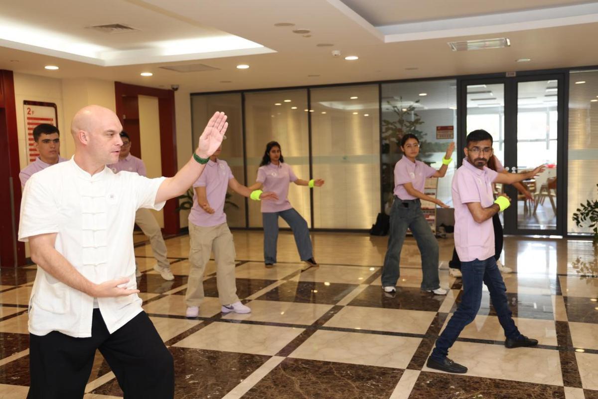 During a tai chi practice session led by Aaron Christopher Joost, a US student majoring in TCM translation at SUTCM, participants gracefully tried their hand at the traditional martial art form. Joost, who has been practicing tai chi since aged 11, shared his understanding of the Chinese martial arts.