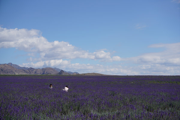 Tourists take photos in a lavender field in Ili Kazak autonomous prefecture, Xinjiang Uygur autonomous region. [Photo by Xu Lin/China Daily]
