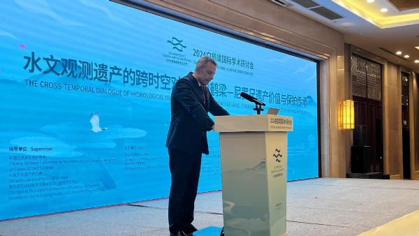An academic symposium centered on the heritage value, conservation and inheritance of Baiheliang in China's Chongqing and Raoudha Nilometer in Egypt's Cairo is held in Chongqing's Fuling district on Oct 12, 2024. [Photo by Deng Rui/For chinadaily.com.cn]