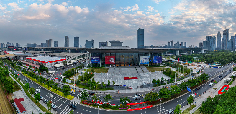 A bird's-eye view of the venue of the upcoming 136th session of the China Import and Export Fair in Guangzhou, South China's Guangdong province on Oct 13, 2024. [Photo/VCG]
