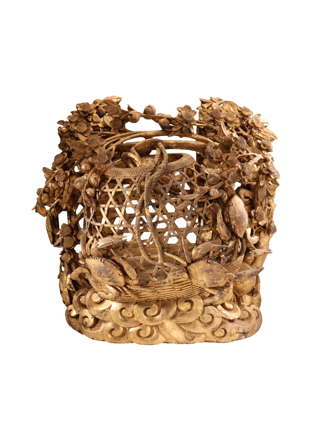 Gold-lacquered wood carvings of crab baskets from the Qing Dynasty