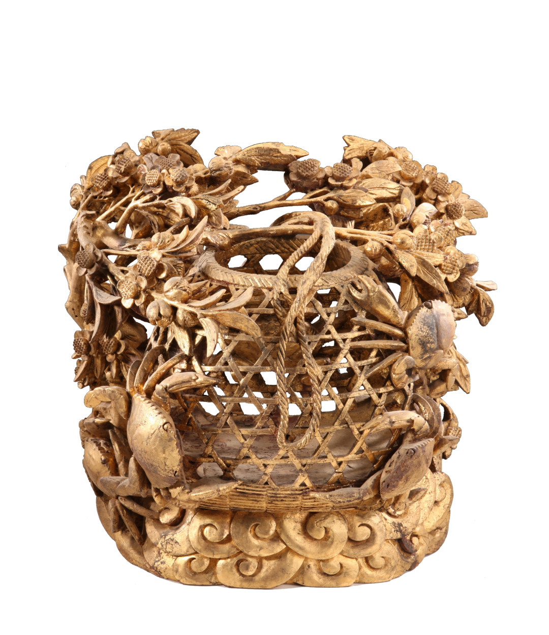 Gold-lacquered wood carvings of crab baskets from the Qing Dynasty