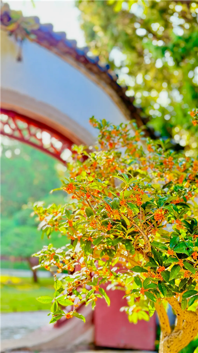 When the autumn breeze blows, the scent of osmanthus arrives delicately, adding a unique charm to this ancient temple. [Photo/WeChat account: SDTXTA]