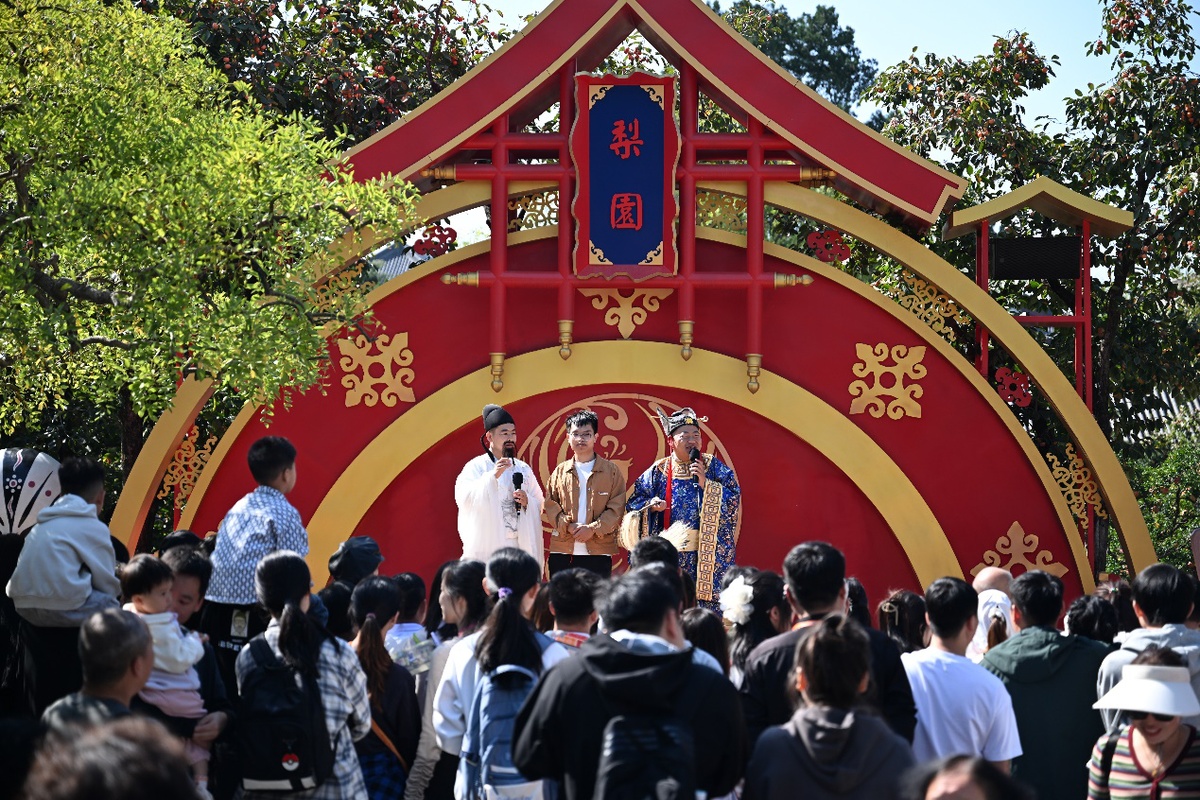 During the holiday, Huaqing Palace hosted daily events featuring live music performances, where visitors joined in singing iconic songs. On Oct 1, National Day, representatives from various industries, including public service and healthcare, participated in a special musical event alongside tourists.