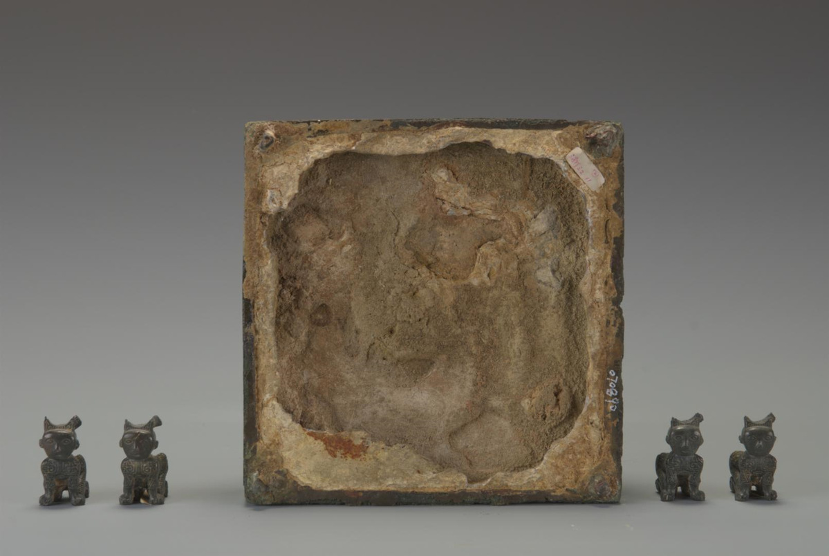 The bottom of the bronze base and its four kneeling figurine-shaped supports [Photo/Official website of Zhejiang Provincial Museum]