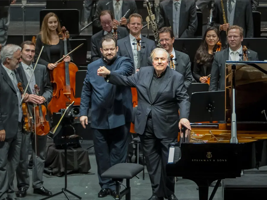 Yefim Bronfman answers a curtain call. [Photo/Official WeChat account of Shanghai Oriental Art Center]