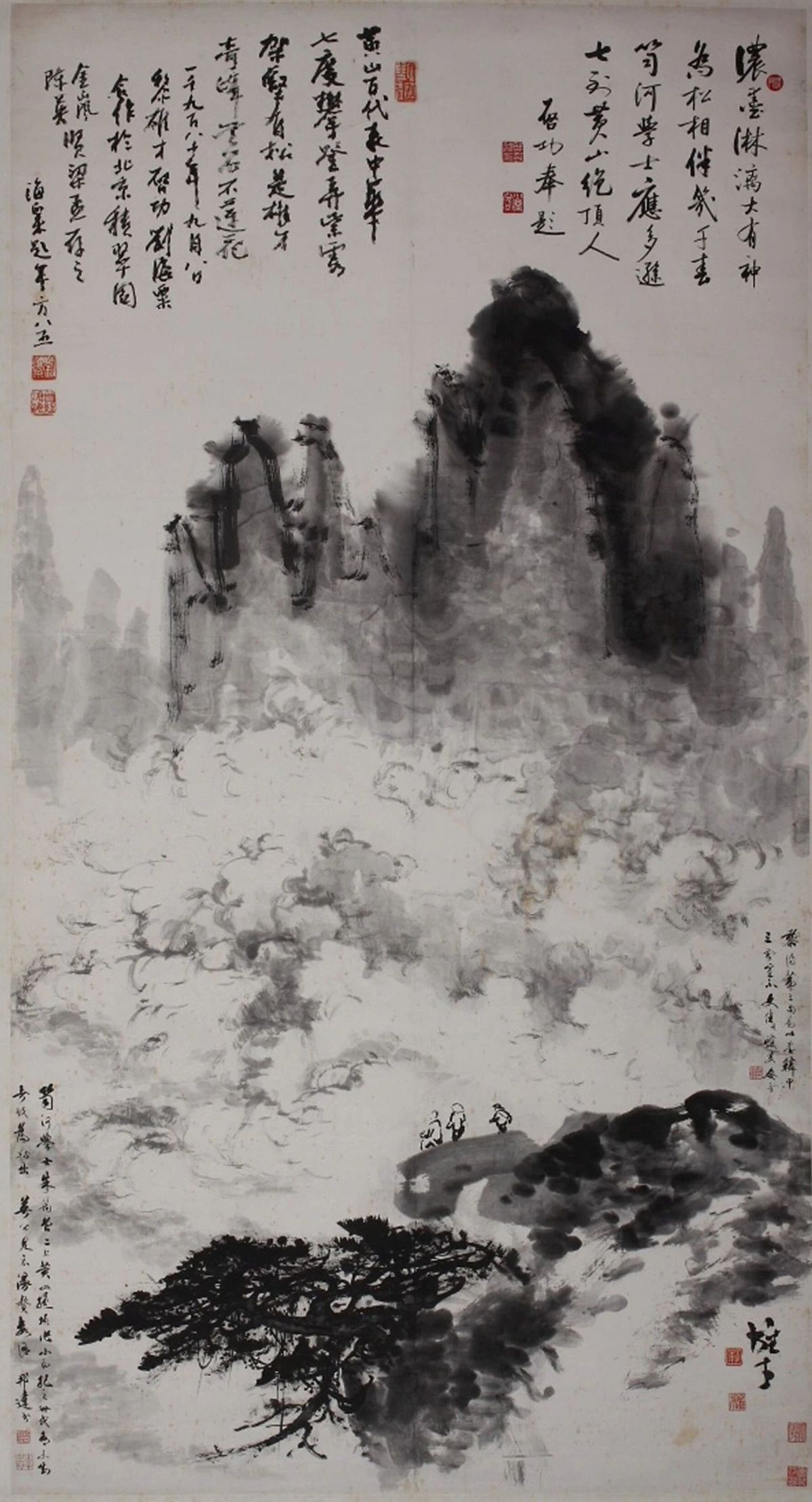 Cloud Sea of the Huangshan Mountain, drawn by Liu Haisu (1896-1994), Qi Gong (1912-2005), Li Xiongcai (1910-2001) and Xu Bangda (1911-2012) [Photo/Official WeChat account of Fujian Museum]