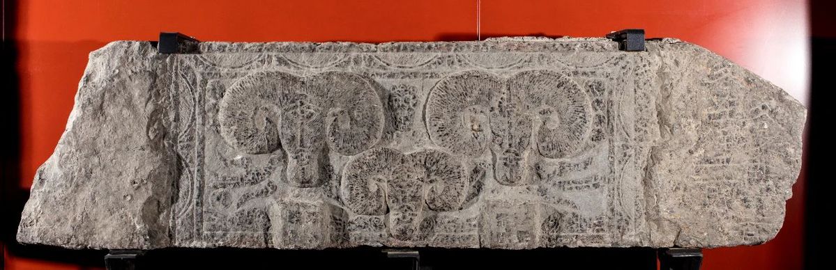 Stone relief depicting three goat heads, from the collection of Shandong Museum [Photo/Official WeChat account of Shandong Museum]