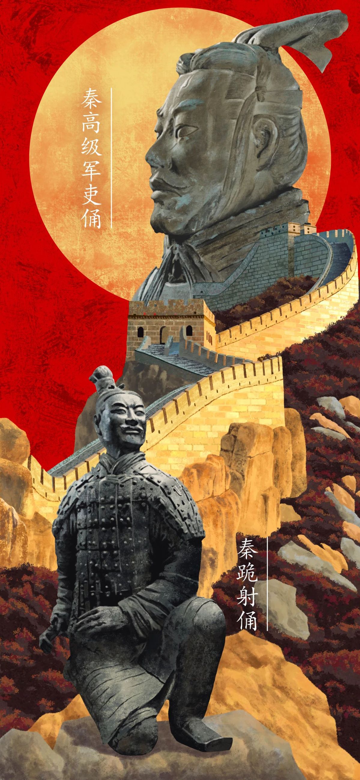 Qin Dynasty senior military official figurine (top) and Qin Dynasty kneeling figurine (bottom) [Photo/provided to chinaservicesinfo.com]