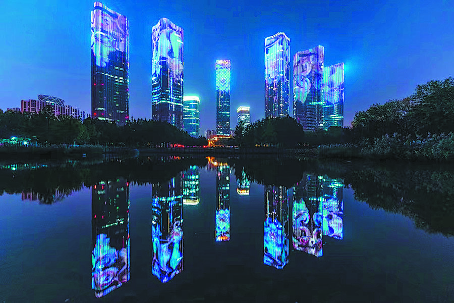Buildings in Chaoyang district come alive at night, with colorful illuminations and light performances, such as those in Wangjing area, the central business district, the Liangma River economic belt, and the Sanlitun subdistrict, which is a shopping, dining and nightlife hub. [Photo provided to China Daily]