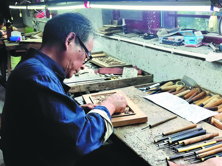 Kuai Zhenghua, 62, master of Huizhou wood carving. [Photo provided to China Daily]