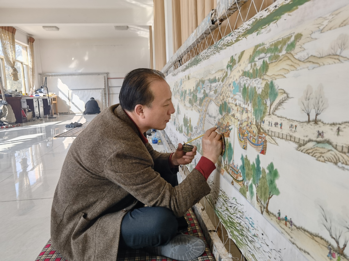 "It's more than just art, it's a record of history. This painting tells the stories of the past. I want more people to see the value of thangka art and culture. My goal is to bring thangka to the world so that those who've never seen it can understand its beauty," he said. "I believe people will appreciate it, learn to preserve and build upon it, and share it," Niangben said at the exhibition's reception, wearing traditional Tibetan clothing that he said represents himself and his culture.