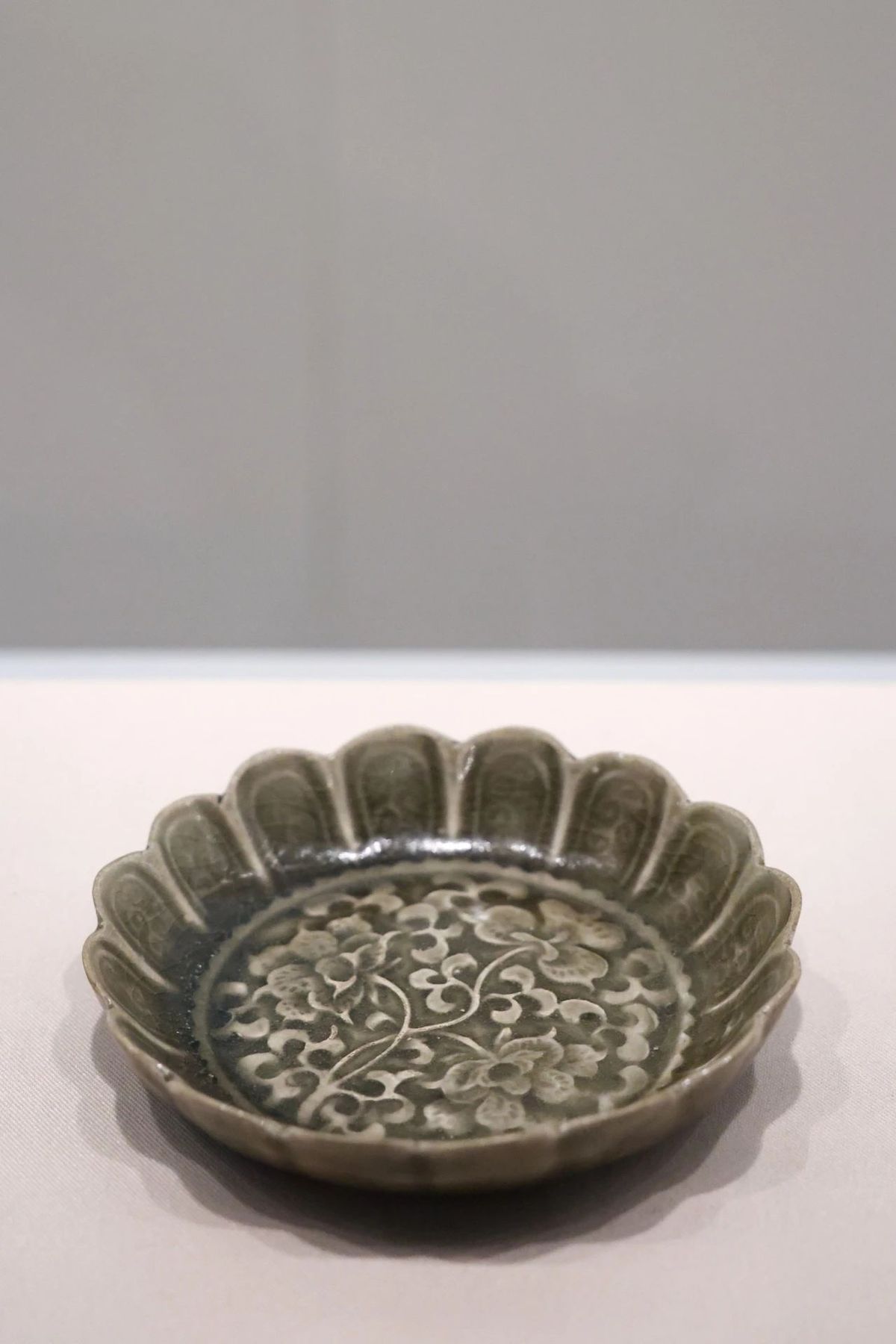 Celadon petal-rimmed plate with floral motifs, Yaozhou ware, Song Dynasty (960-1279) [Photo/Official WeChat account of Wuhan Museum]