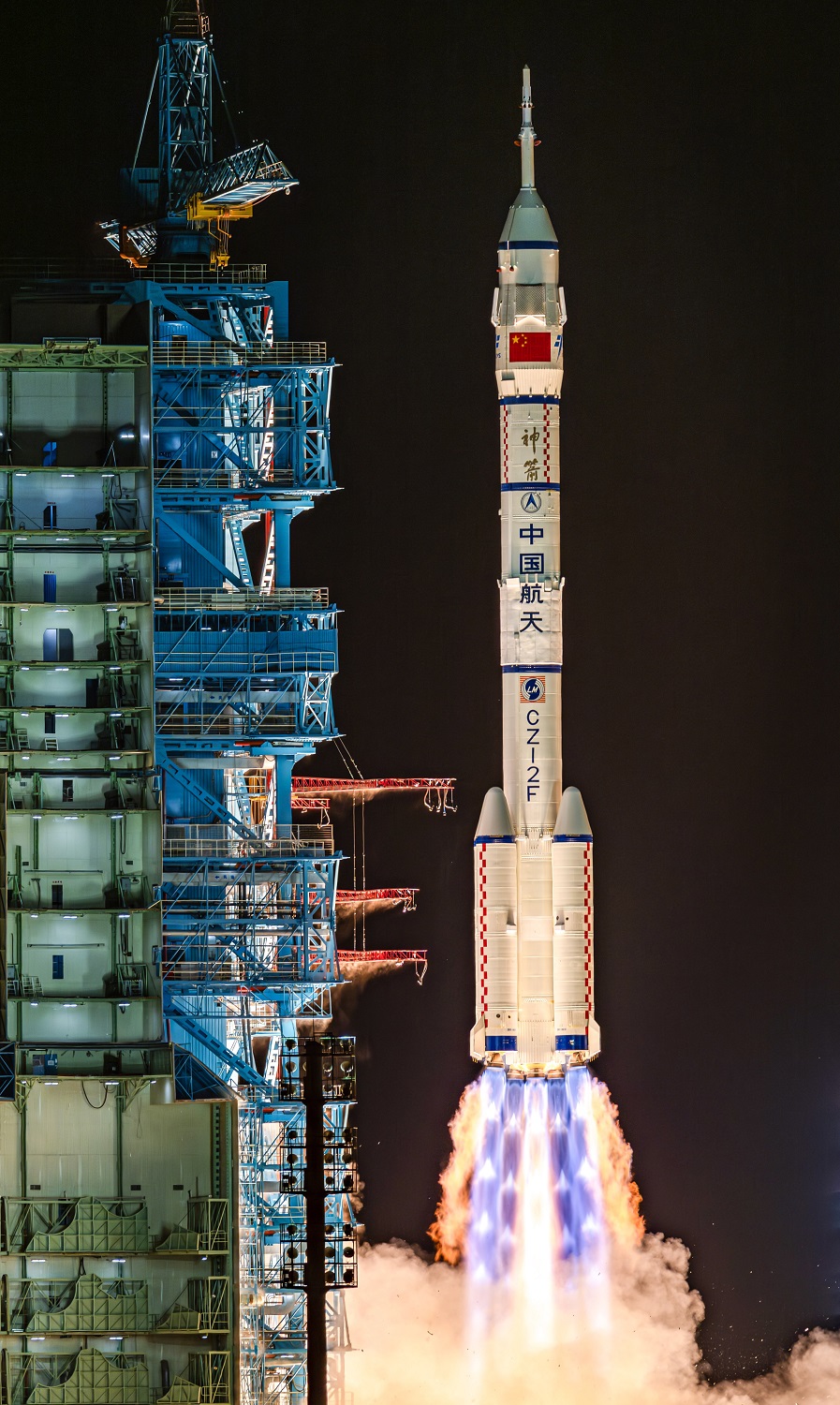 The Long March 2F rocket carrying the Shenzhou XIX mission crew lifts off from the Jiuquan Satellite Launch Center on Wednesday morning. [Photo by Gu Jianwen/for chinadaily.com.cn]
