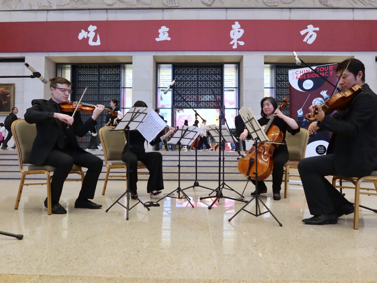 Visitors to the National Museum of China were delighted by a surprise pop-up concert by the Philadelphia Orchestra on Wednesday afternoon. In a mesmerizing 30-minute performance, the quartet showcased the elegance of Mendelssohn, the innovation of contemporary music, and the passion of Gardel’s tango. Spectators were captivated, with many recording this unique fusion of classic and modern sounds.