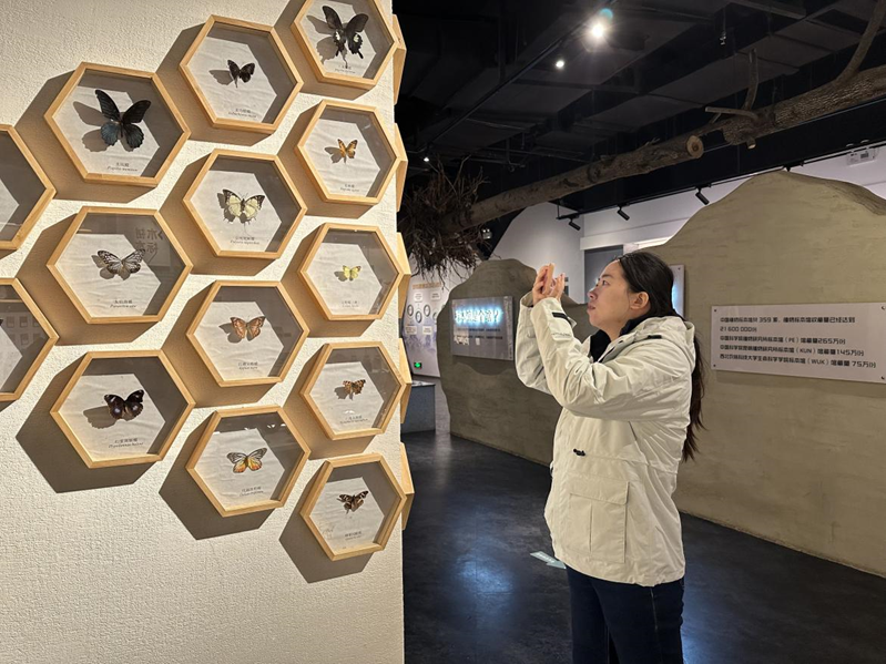 A tourist at the Plant Specimen Museum at the Tianyuhe National Wetland Park. [Photo provided to chinadaily.com.cn]