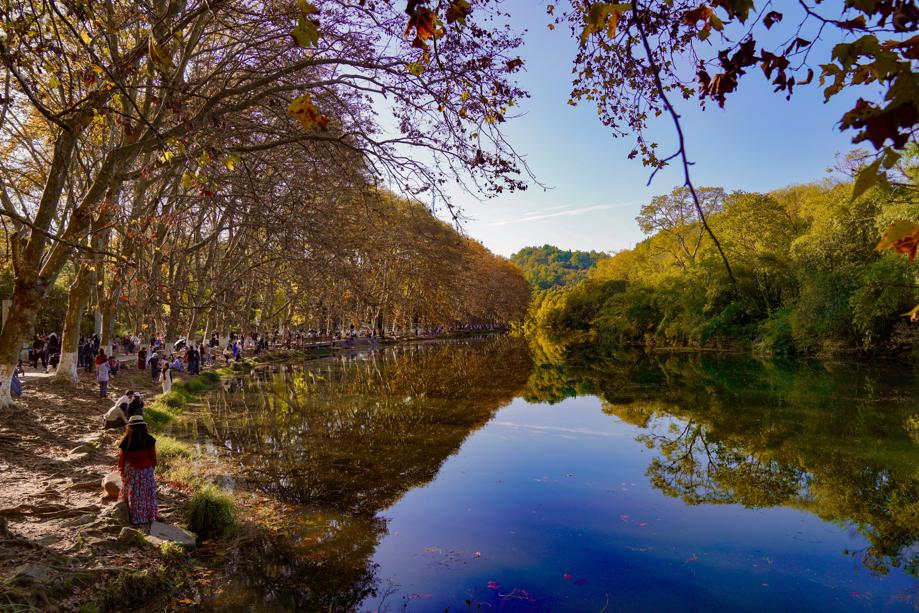 French plane trees along the Huaxi River turn yellow in autumn, forming a golden avenue. [Photo by Sun Cao/Provided to chinadaily.con.cn]