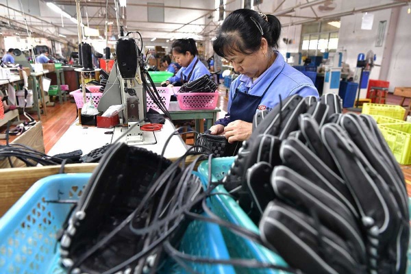 Employees work on a production line of baseball-related products at a Taiwan-funded company in Longyan, Fujian province. ZHANG BIN/CHINA NEWS SERVICE