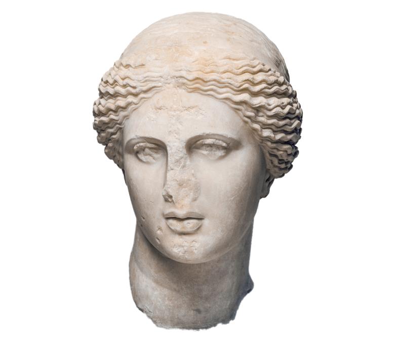 Roman replica of a 4th century BC marble head statue of Aphrodite [Photo/Official WeChat account of National Museum of China]