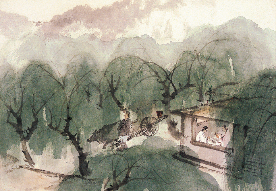 A painting inspired by a poem written by Wang Wei (701-761), ink and color on paper, 1940s, from the collection of Nanjing Museum [Photo/Official WeChat account of Nanjing Museum]