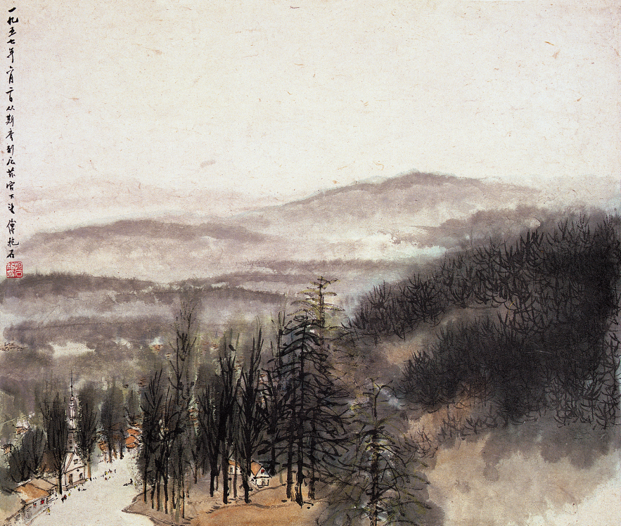 Looking down from Smolenice Palace, ink and color on paper, 1957, from the collection of Nanjing Museum [Photo/Official WeChat account of Nanjing Museum]