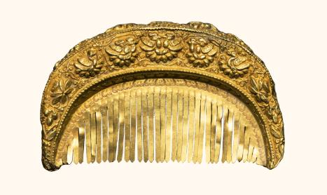 Gold comb with mandarin duck and lotus flower motifs [Photo/Official WeChat account of China Grand Canal Museum]