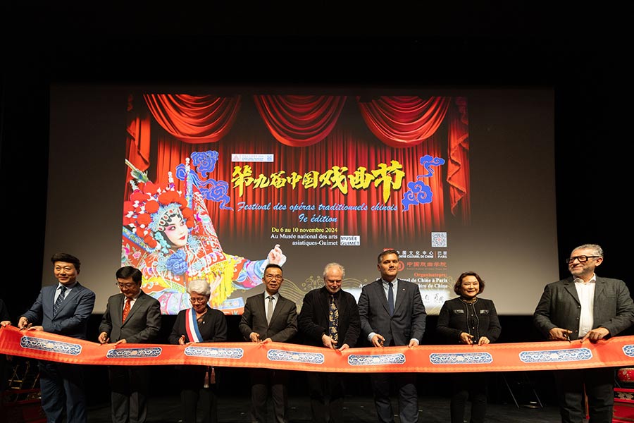 The grand opening of the 9th Paris Chinese Opera Festival, jointly organized by the Paris Chinese Cultural Center and the Chinese Opera Academy, took place on Nov 6 at the Guimet National Asian Arts Museum Theater in Paris. Over 280 Chinese and French dignitaries, including Chinese Ambassador to France Lu Shaye, representatives from the French Ministry of Culture, and various other esteemed guests, attended the opening ceremony and watched the Peking Opera The Orphan of Zhao.