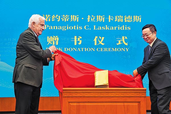 One of the donated copies, Aristotle's Nicomachean Ethics.[Photo by Jiang Dong/China Daily]