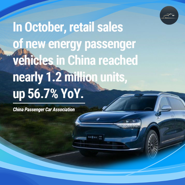 In October, production of new energy passenger vehicles reached about 1.38 million units, representing a 49.9 percent year-on-year increase and a 12.6 percent rise from the previous month.
