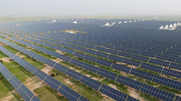 In October, Fuxian village in Shuangliao city, Northeast China's Jilin province, unveiled a unique eco-friendly "solar-grazing" farm operated by China Three Gorges Corporation at the Fuxian Photovoltaic Power Station. Blue solar panels cover 521 hectares of saline-alkali soil, forming a canopy over lush grasslands where cattle roam and graze beneath.