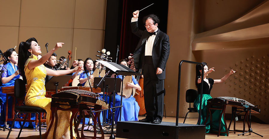 Under the baton of conductor Ye Cong, a concert is staged at the opera house of the Central Conservatory of Music in Beijing on Sunday. [Photo provided to chinadaily.com.cn]