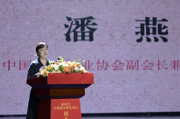 Pan Yan, vice-president and secretary-general of the China Association of Performing Arts, during the New Era Capital Script Incubation Project announcement event in Beijing on Wednesday. [Photo provided to chinadaily.com.cn]
