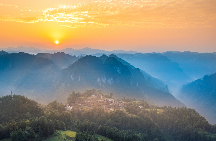Sunrise at Shibadong Village [Photo provided to chinadaily.com.cn]
