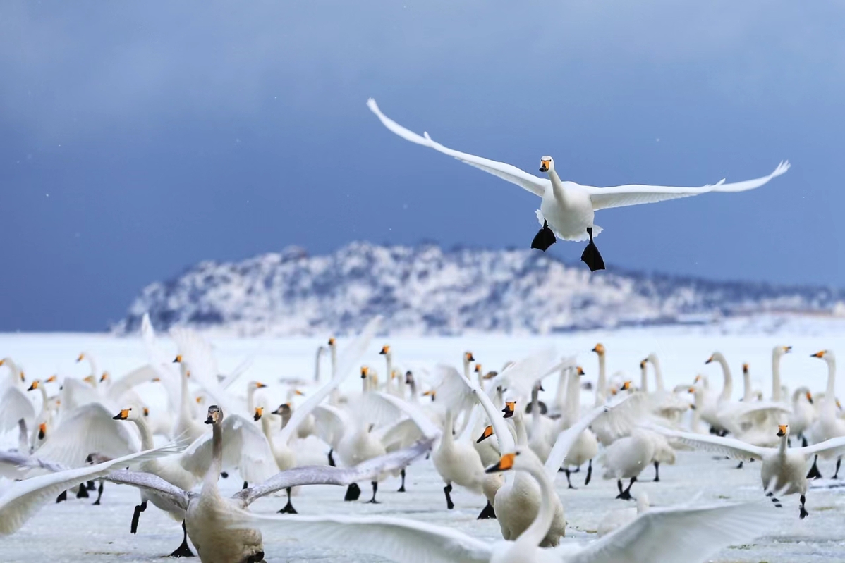 Swans reflect the snow.[Photo provided to chinadaily.com.cn]