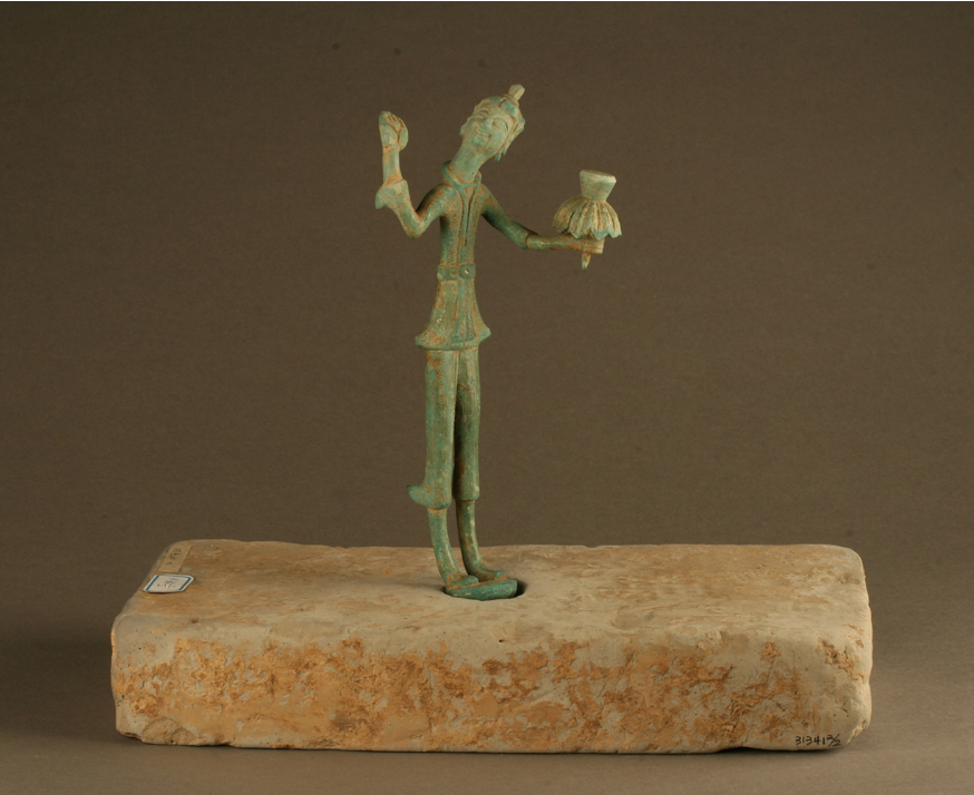 Housed at Hunan Museum, this bronze figurine from the Southern Dynasties (420-589) captures a mesmerizing ancient dancer. Standing gracefully on a brick base, it’s as if he has his own private stage.