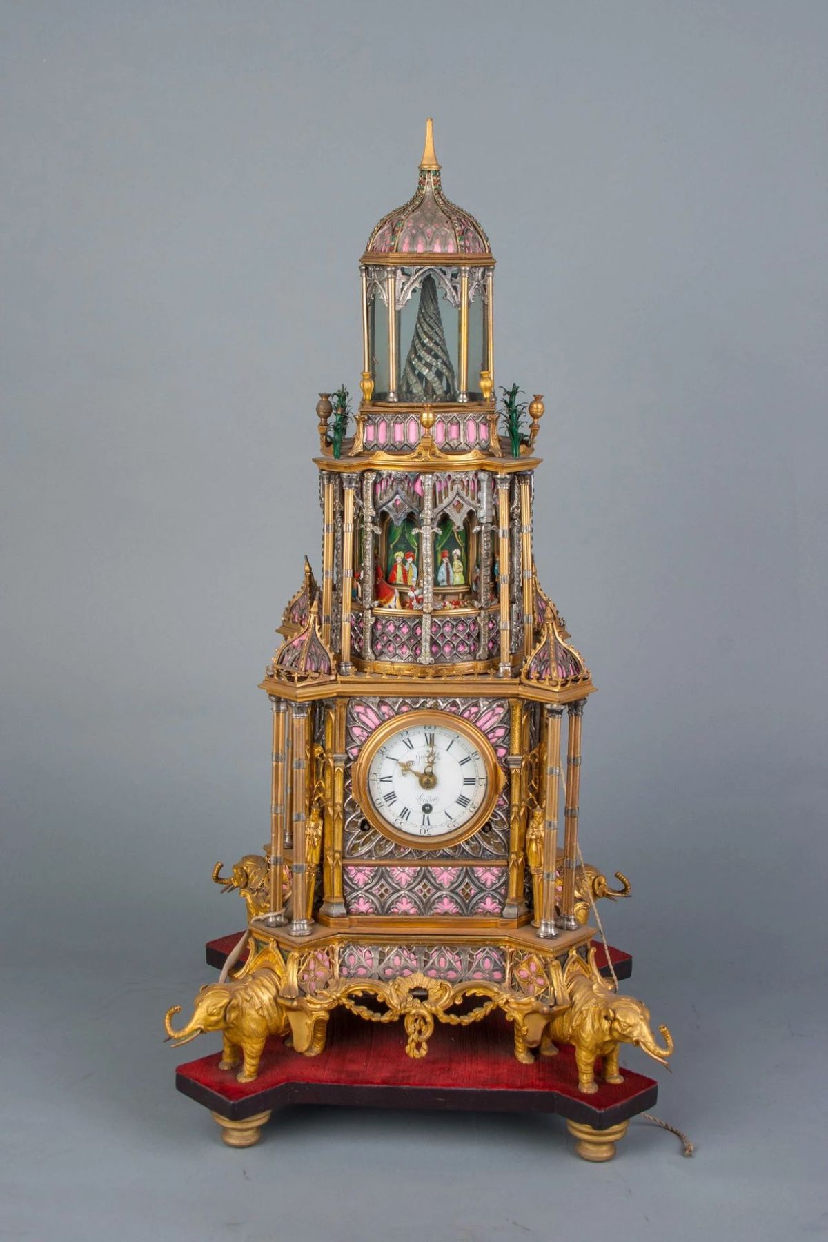 Gilded bronze tower-shaped timepiece decorated with four elephants, 18th century [Photo/Official WeChat account of Chengde Mountain Resort Museum]