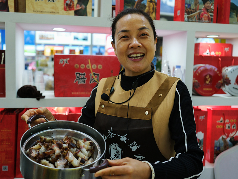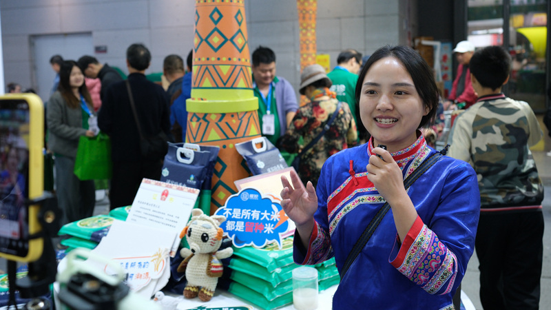 Exhibitors promote agricultural products at the Changsha International Convention and Exhibition Center.[Photo/VCG]