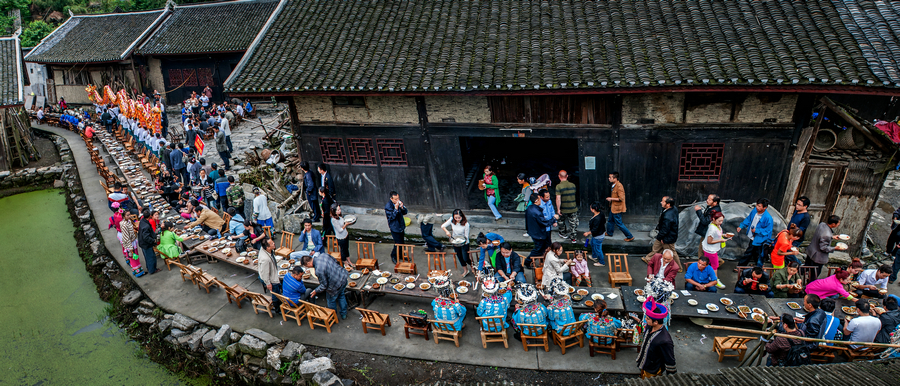 Long-table banquets at Shibadong Village [Photo provided to chinadaily.com.cn]